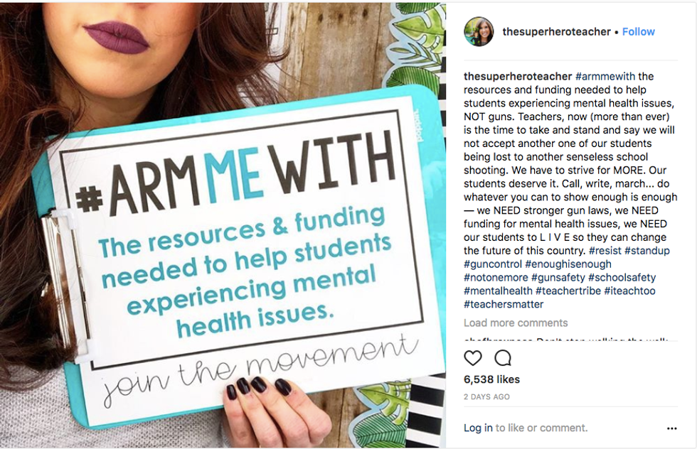 Lerner is not the only one with these grievances. In response to the president's suggestion, English teachers Olivia Bertels and Brittany Wheaton coined the hashtag #ArmMeWith on Instagram, to call attention to more pertinent needs––like the need for more school supplies––while slamming the suggestion that arming teachers would actually keep schools safe.