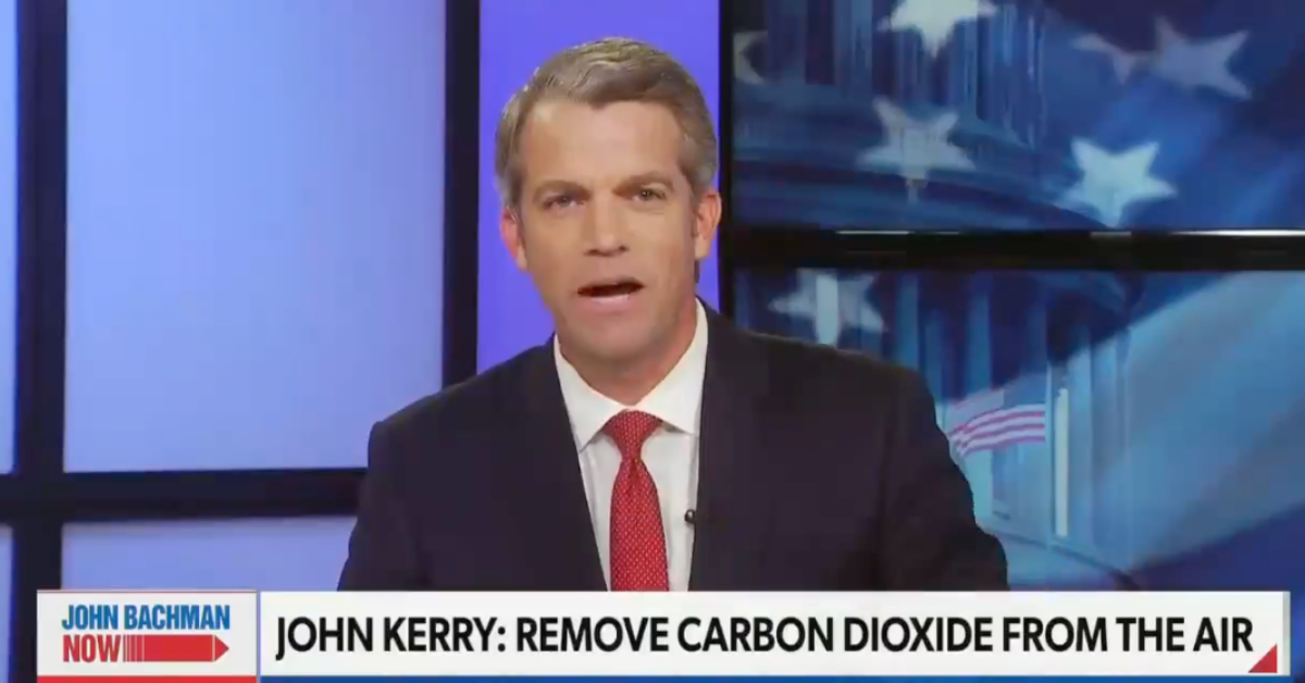 Newsmax host John Bachman is not a scientist, and he demonstrated that fact after showing a clip of John Kerry—the head of climate policy in the Biden administration—giving a speech on the importance of President Joe Biden's climate jobs act.