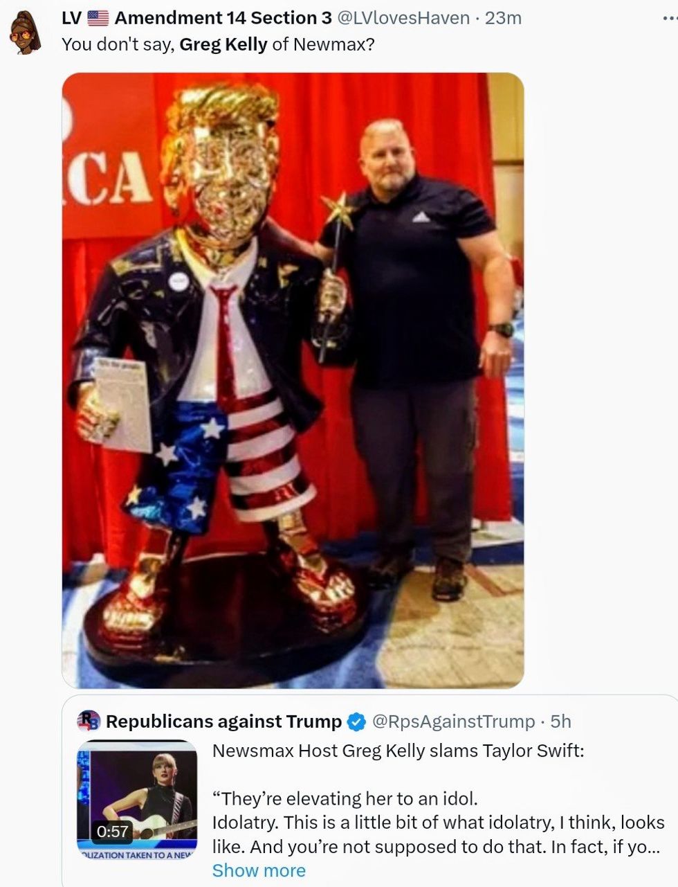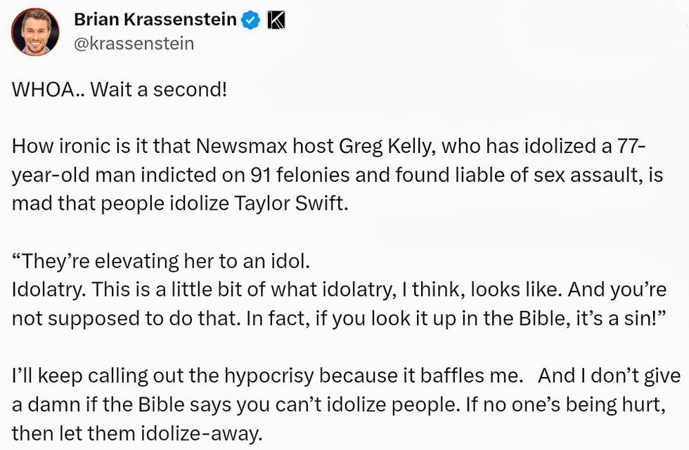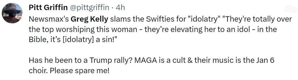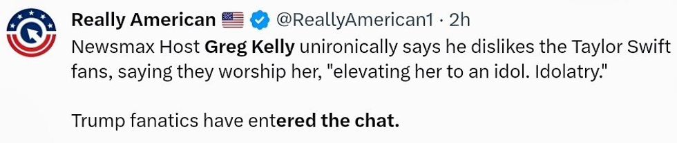 Newsmax host Greg Kelly became the latest conservative mouthpiece to attack Taylor Swift for existing and being talented. As with most of his rants, it's a little difficult to determine his point.