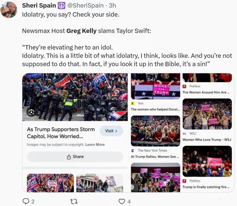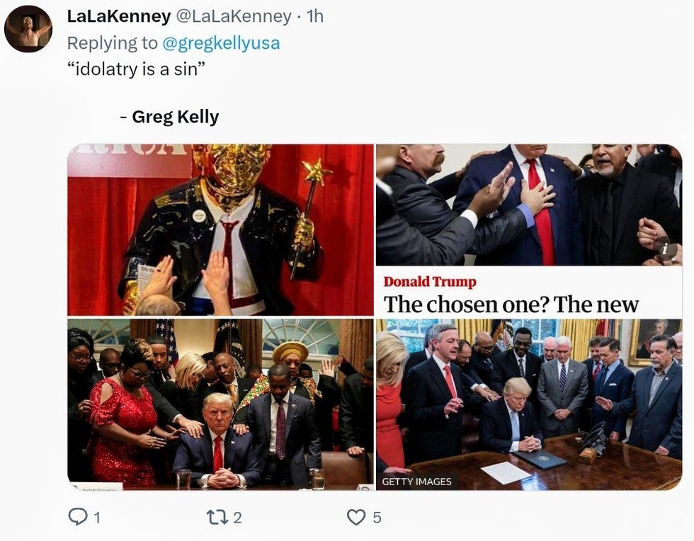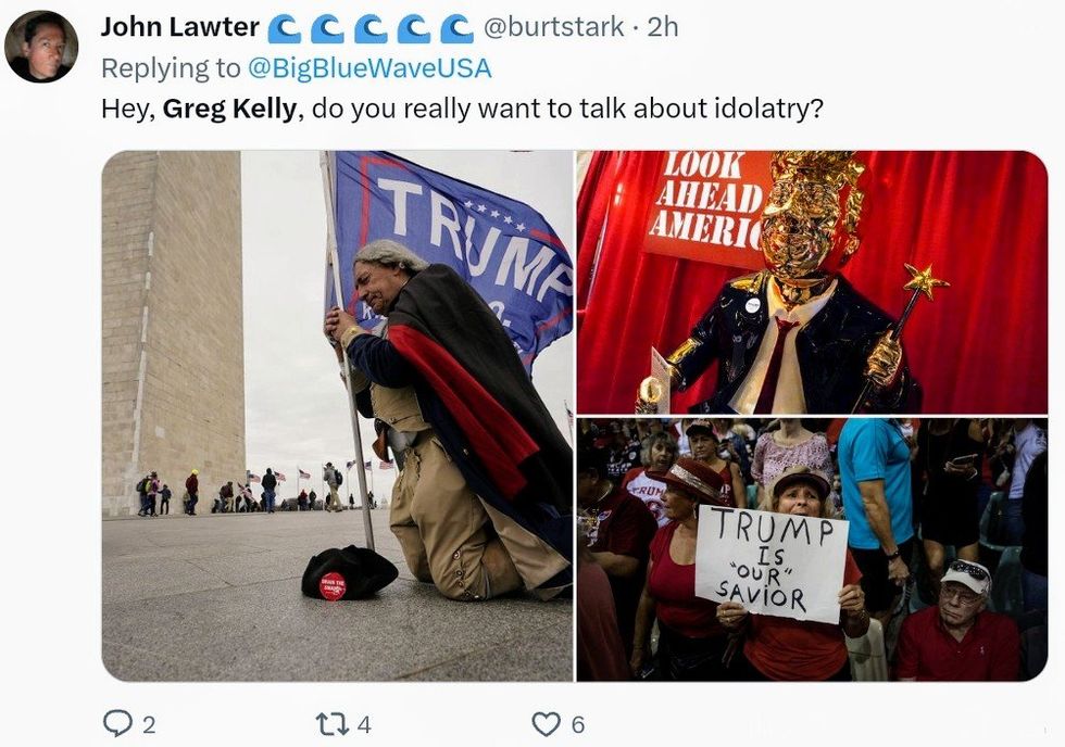 Some pointed out Kelly's own idolatry, as he is unapologetically a devout MAGA minion.