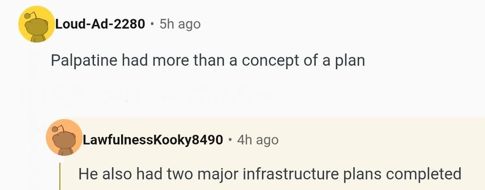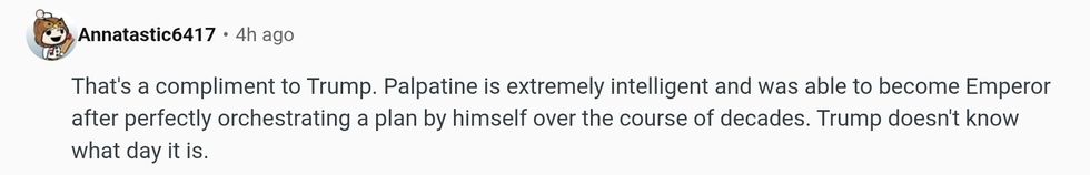 Although on Reddit in the Politics subReddit, people debated if Palpatine was the best representation of Trump.