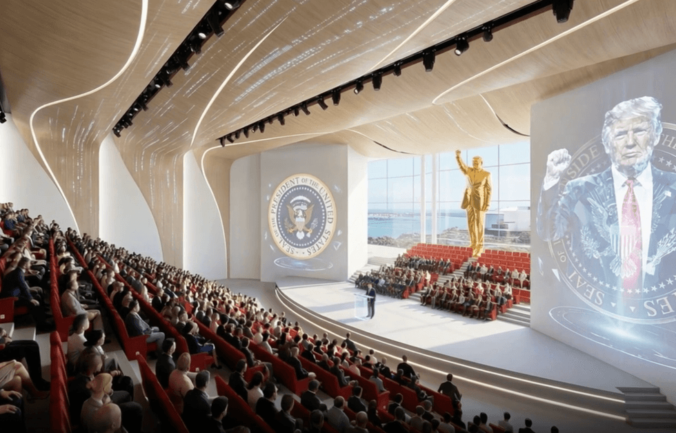 According to the renderings, Trump’s presidential library would be housed in a skyscraper with the name TRUMP displayed in large capital letters at the top. In the images, the proposed tower looms over the surrounding Miami skyline.