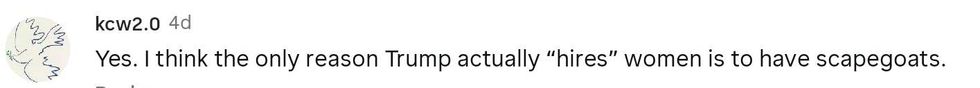 "There's a familiar pattern here. Women are brought in, packaged Mar-a-Lago style, and lifted up as long as they commit to wholeheartedly serve the interests of the patriarch at the top."