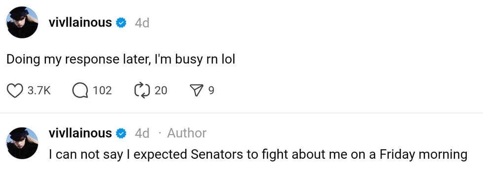 She noted she'd do her response later as she was too busy to bother with her father's latest tantrum. She added she also hadn't expected her Friday to include politicians debating about her.