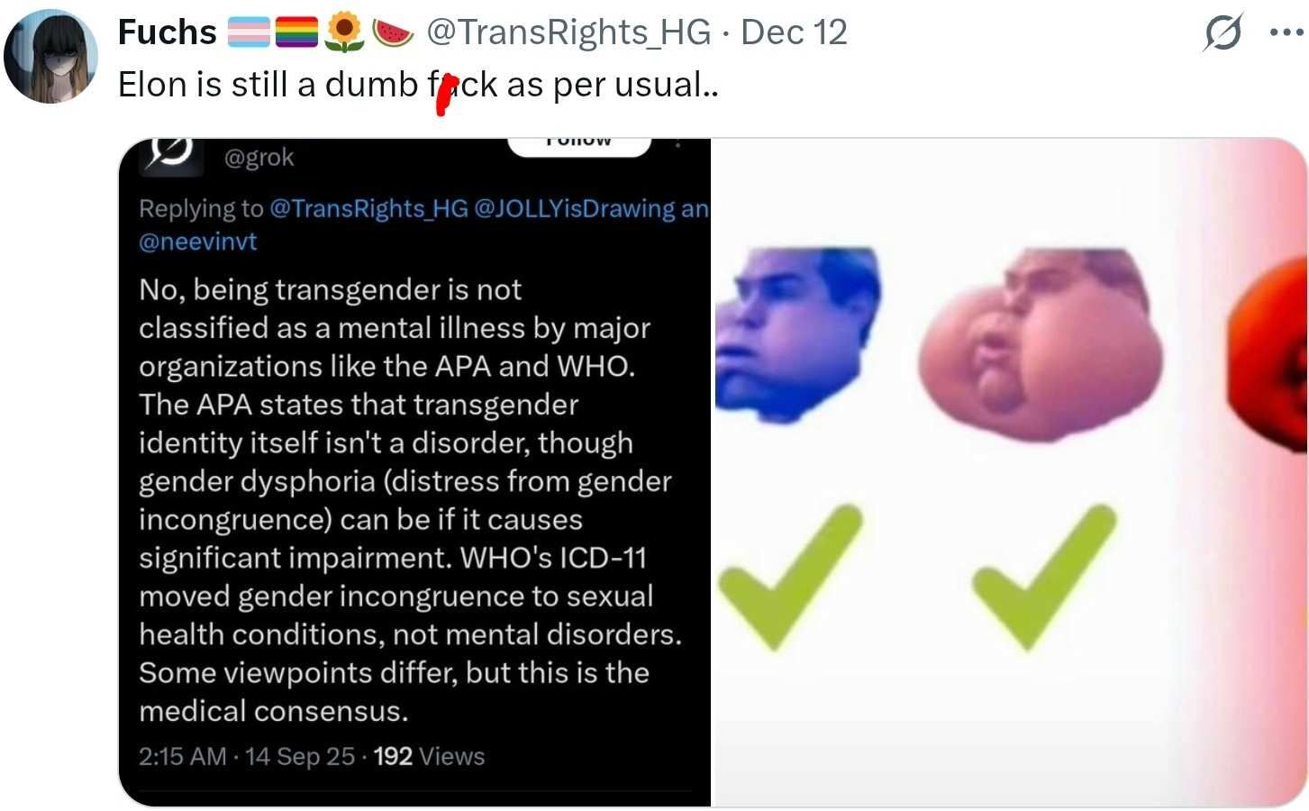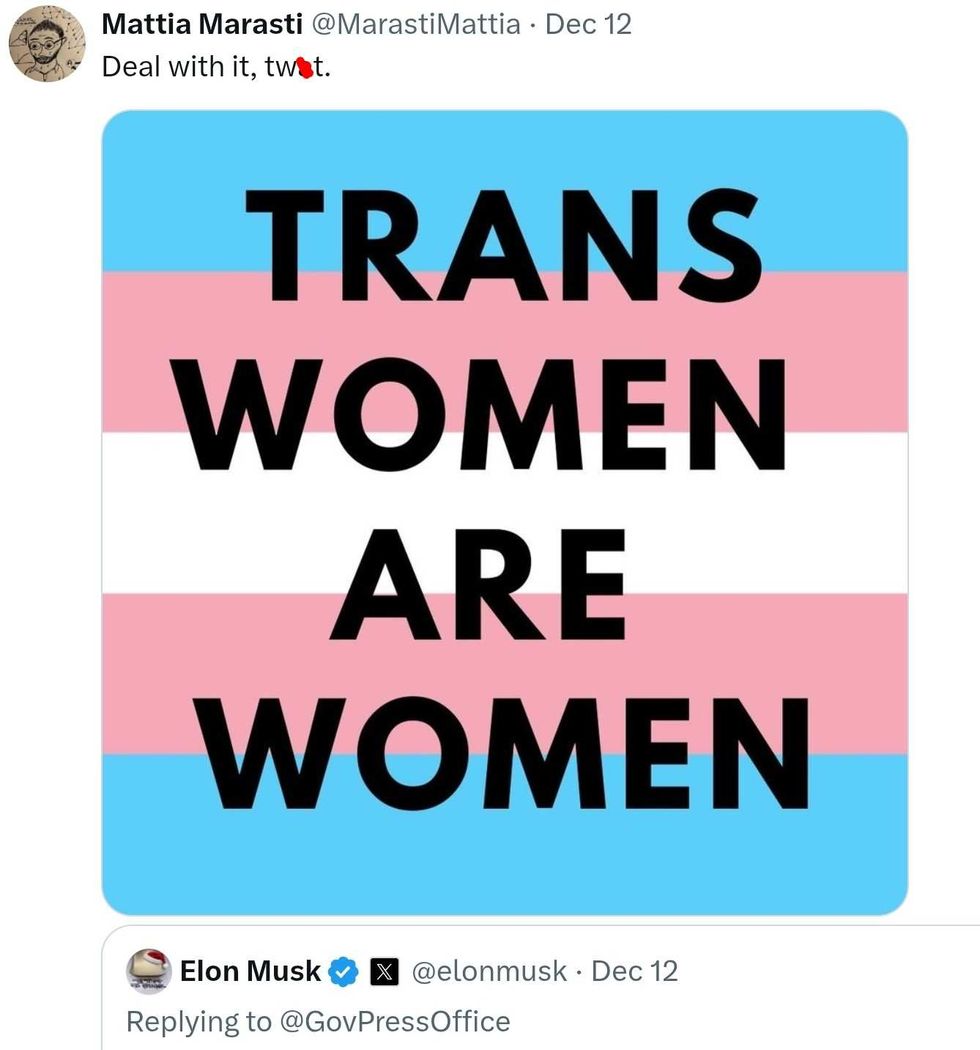 ...Musk got pushback over his transphobic comment even on his own social media site.