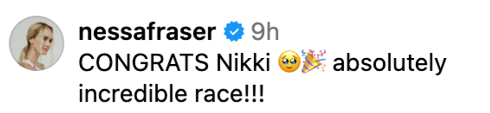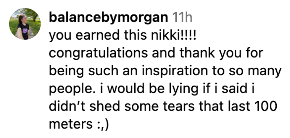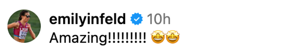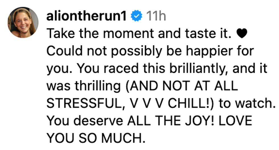 "I’m not sure when this will fully sink in… All I know is today I’m waking up just so grateful for my people, overwhelmed by all the love and support, and filled with joy that I get to race people I deeply love and respect around a track for a living 🙏"