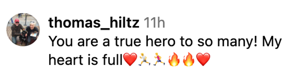Hiltz's partner, Emma Gee, also took to Instagram to mark the occasion, sharing a video of the race and writing: