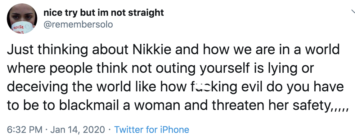 All her stans made it clear that blackmail was a completely unacceptable way for her to be scared into coming out.