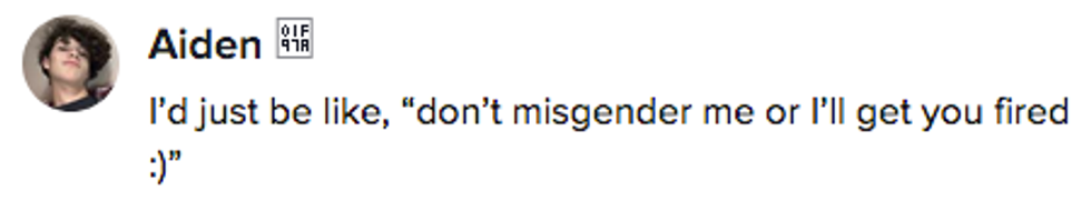 "Intentionally misgendering a student is actively creating a hostile environment and discriminating on the basis of gender identity. That goes against the school's nondiscrimination statement. I know you wouldn't want to do that."