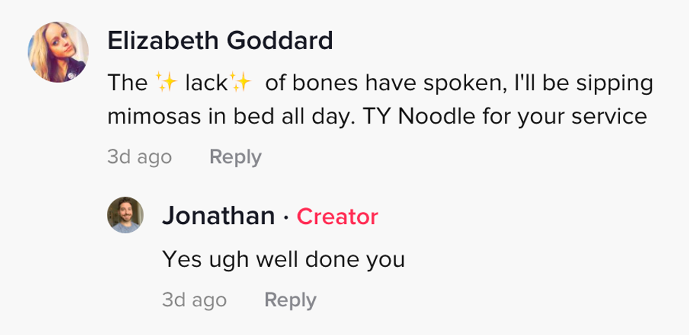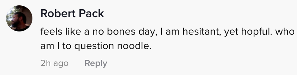 Noodle's adorable little morning routine has become something of a horoscope for the internet, with viewers responding directly to Noodle's bones or lack thereof.