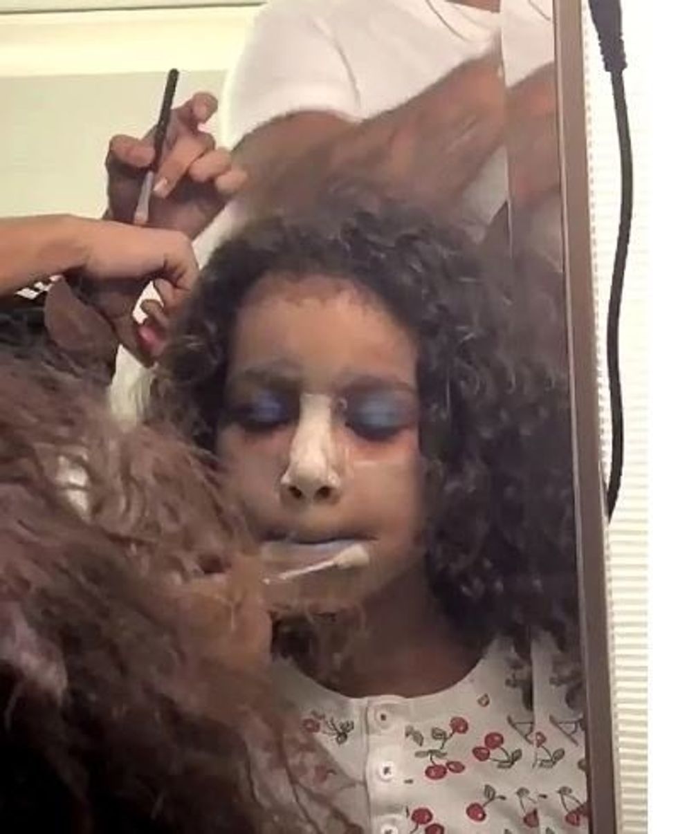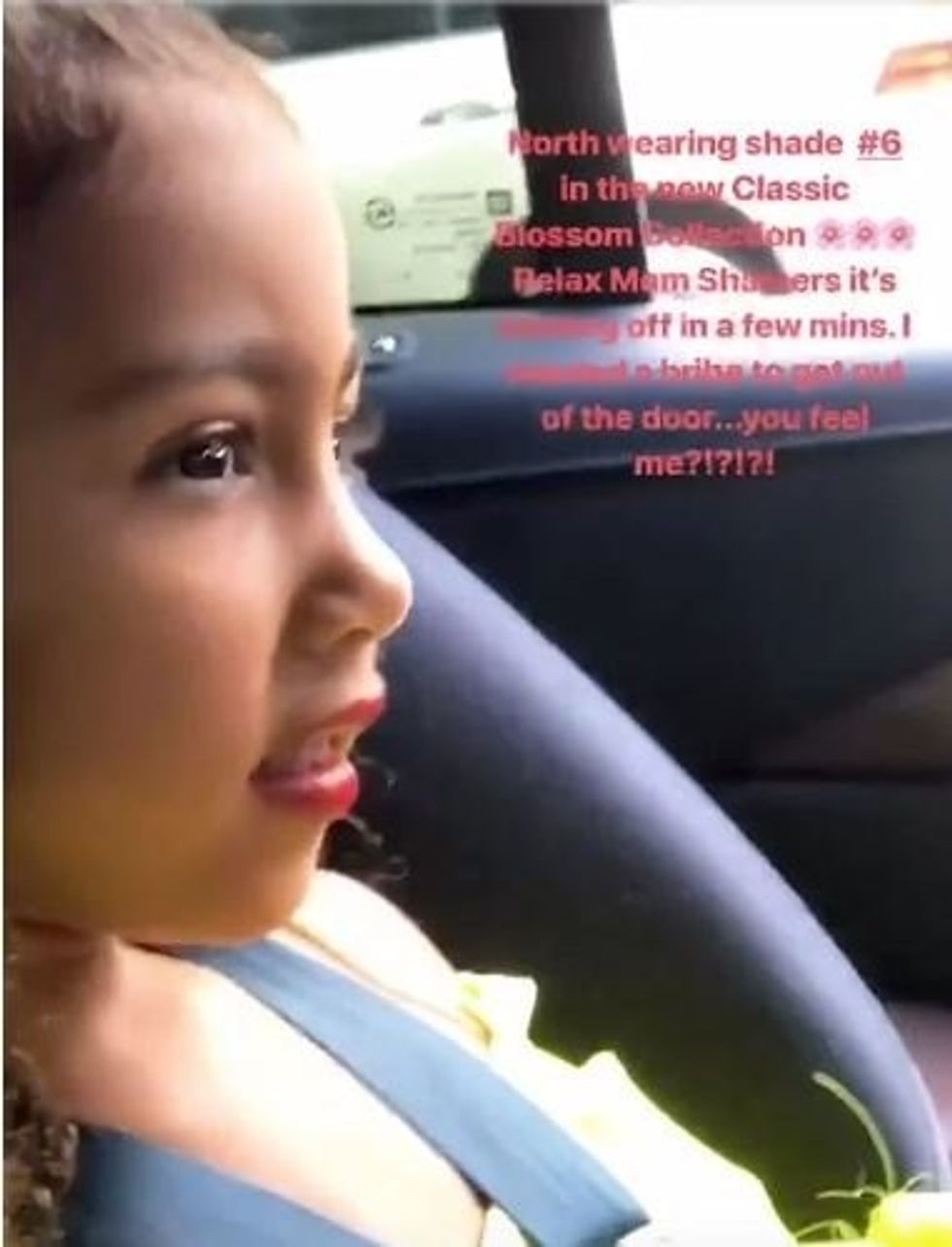 In one, North is wearing lipstick and the makeup line owner can be heard talking about the shade North is sporting.