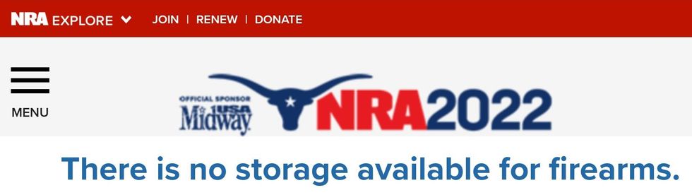All firearms are banned and storage will not be provided anywhere on or near the site—a point the NRA made very clear on their website.