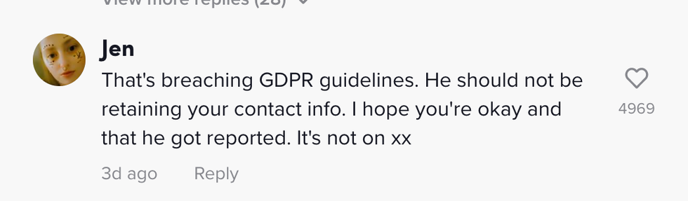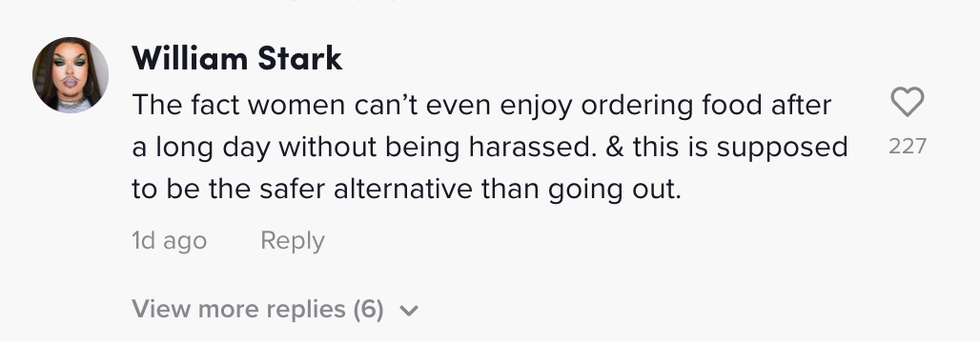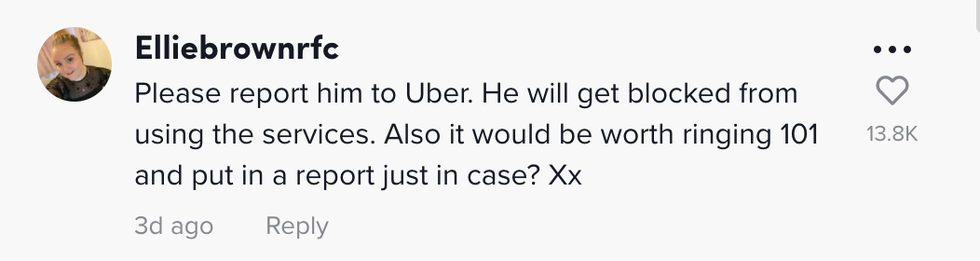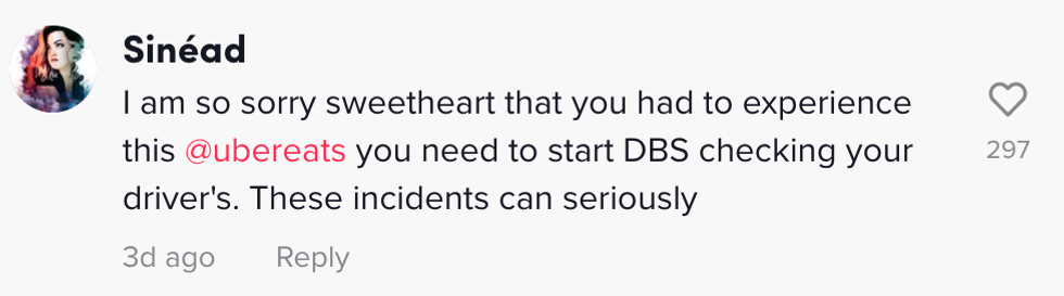 Viewers of her video were certainly scared for her, urging her to report him to Uber Eats, if not the police as well.