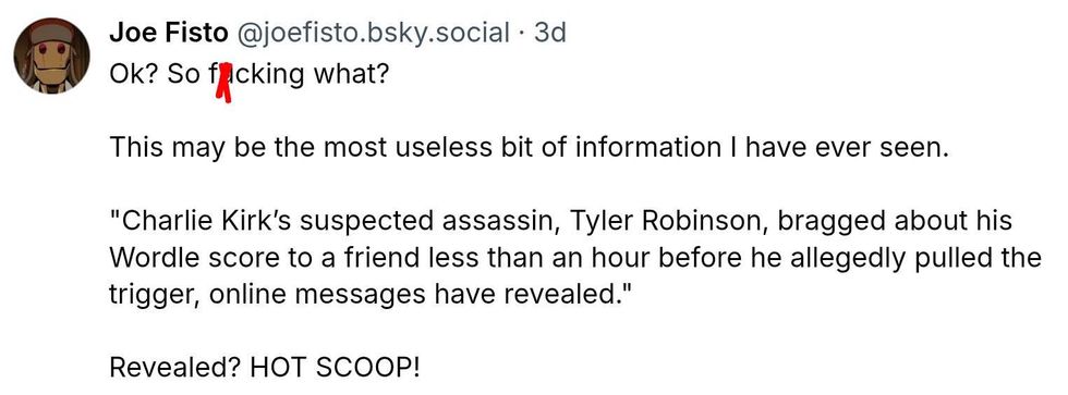 The Post revealed that in the time before the shooting, Kirk's killer played Wordle.