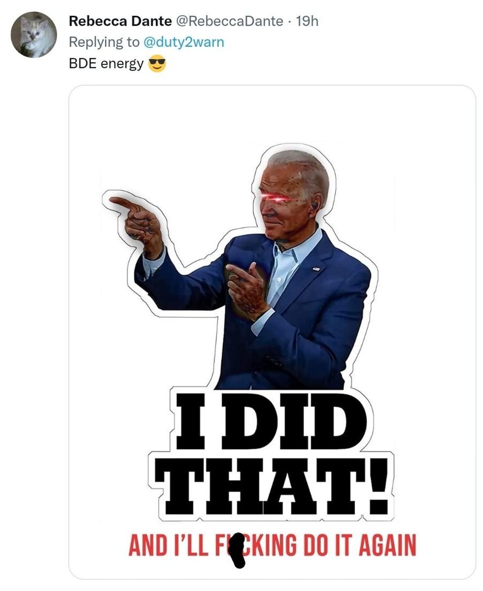 \u201c@FraserIRL @POTUS I am pretty sure he's been waiting his entire presidency for just the right moment to drop that lol.\u201d— President Biden (@President Biden) 1660691366