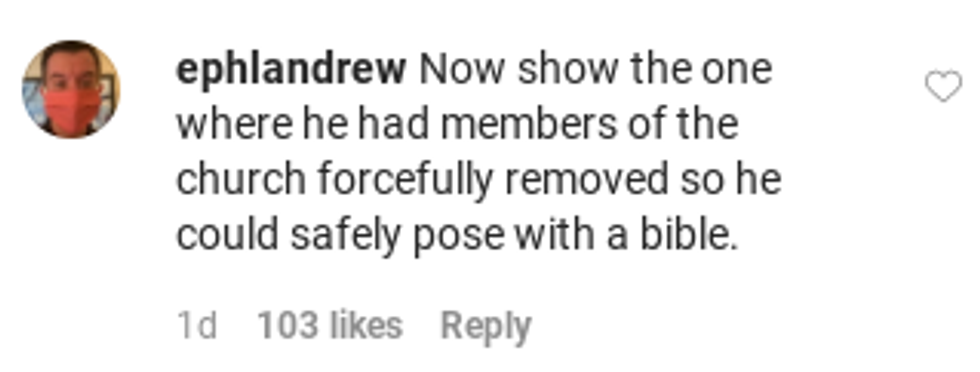 "Not that long ago at St. John's Church. No teargas was needed to get there."