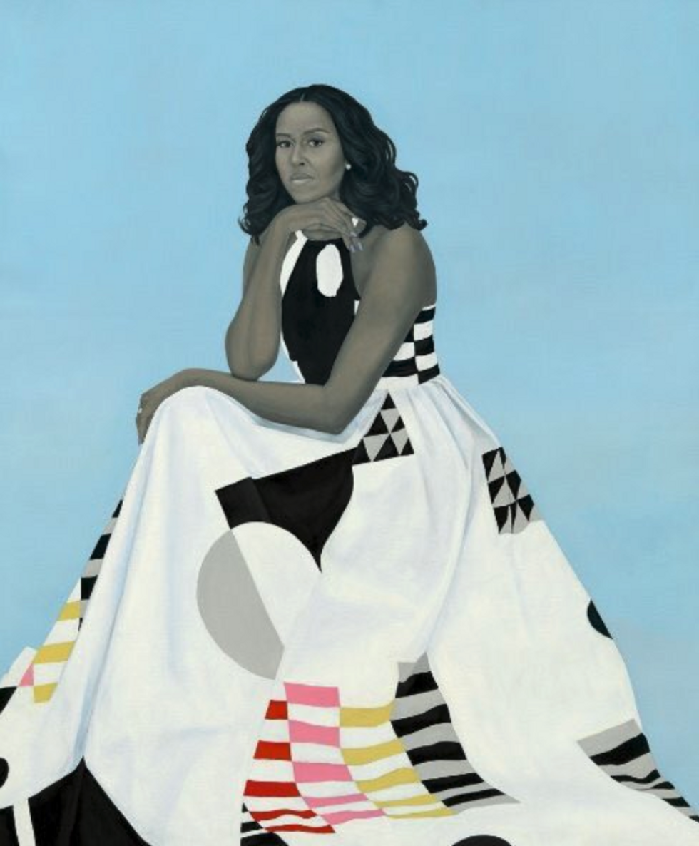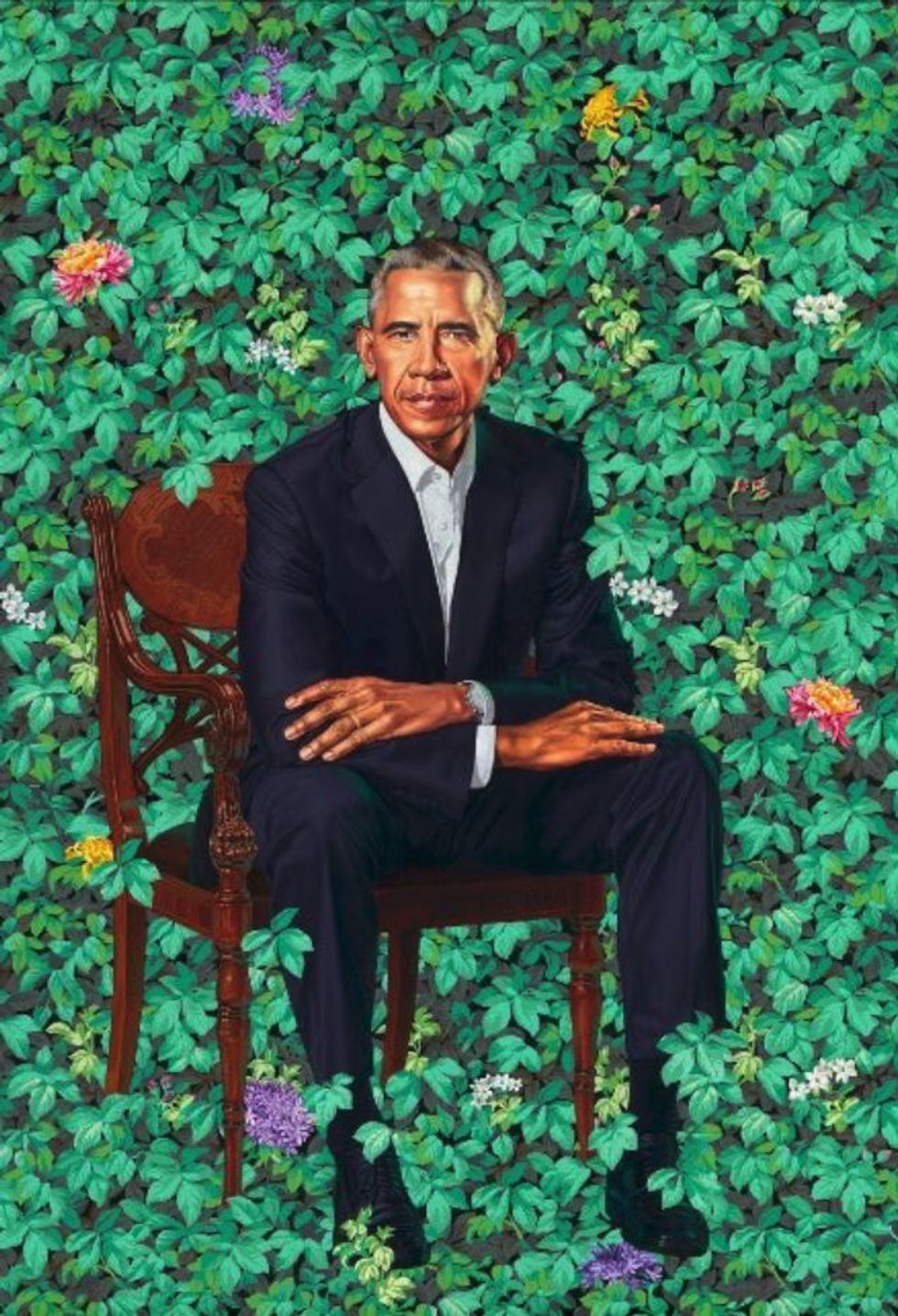 That same philosophy was on display here in the Obamas' choice of artists. Known for bringing the work of African American artists into the white house during their tenure there, the former president chose well-known African American portrait artist Kehinde Wiley, a Yale University-trained painter and the former First Lady, chose newcomer, Amy Sherald the National Portrait Gallery's 2016 Outwin Boochever Portrait Competition first-prize receipient.