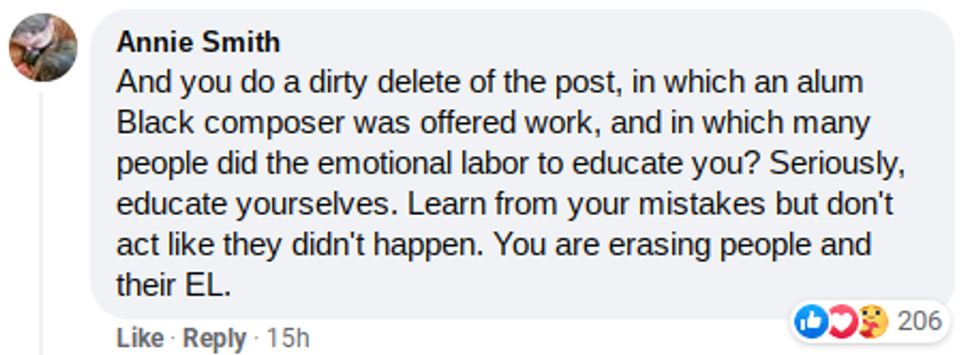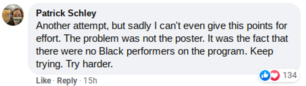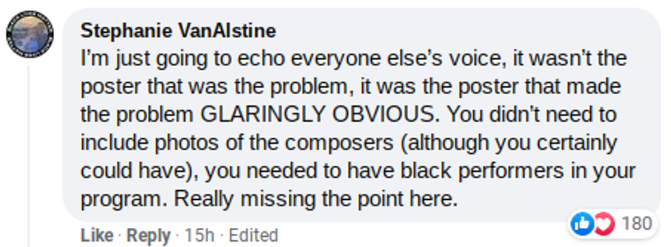 They pointed to the real issue at play—while the school included works by Black composers they didn't include Black performers.
