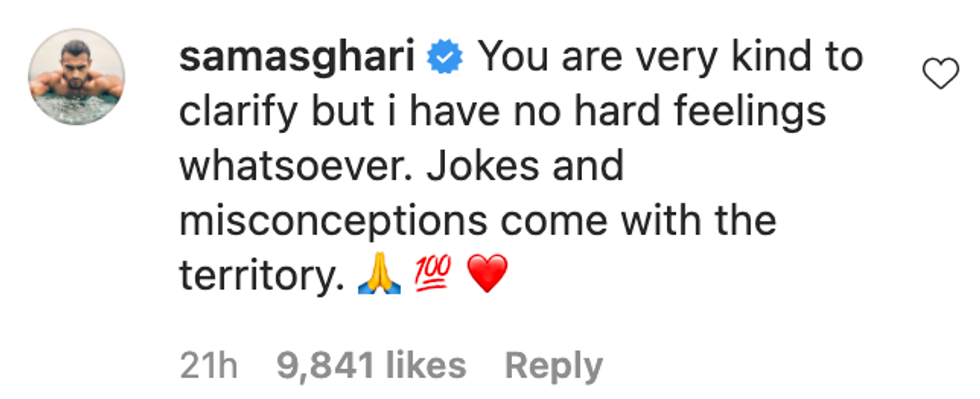 Asghari, for his part, showed no hard feelings towards Spencer, quipping in the comments section "jokes and misconceptions come with the territory".