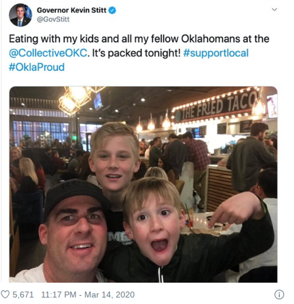 Though if you are in Oklahoma and one of the few people that still to continue to go, your likelihood of meeting the state's governor just shot up.