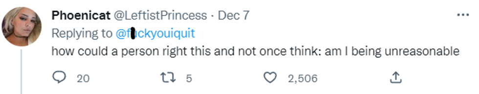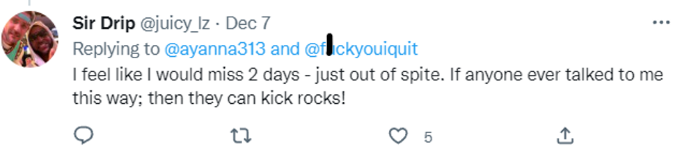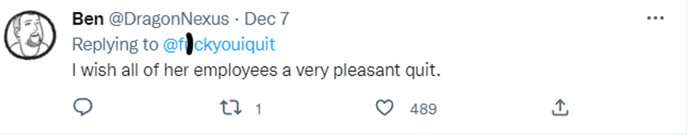 A screenshot of the lovely little monologue racked up more than 35,900 likes on Twitter since the tweet was shared by the account “F*ck You I Quit” on Wednesday.