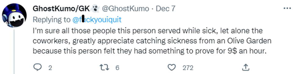 Because it was oh so crucial to mention during the rant, the manager was sure to include that in their 11.5 years of working at Darden they never called out.