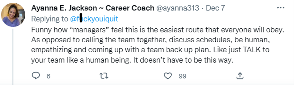"If it’s a ‘family emergency’ and you can’t say, too bad. Go work somewhere else.”