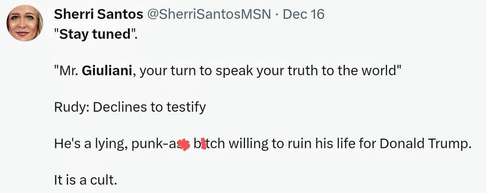 On December 15, the eight member jury in the U.S. District Court for the District of Columbia awarded Fulton County Georgia election workers Freeman and Moss $148.1 million for harm caused by Giuliani's lies.