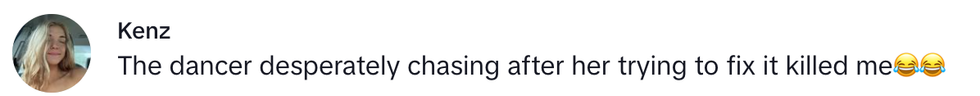 Both the dancer and Rodrigo continued to perform, and the backup dancer was seen in the TikTok doing her best to adjust the top as Rodrigo moved around on stage.
