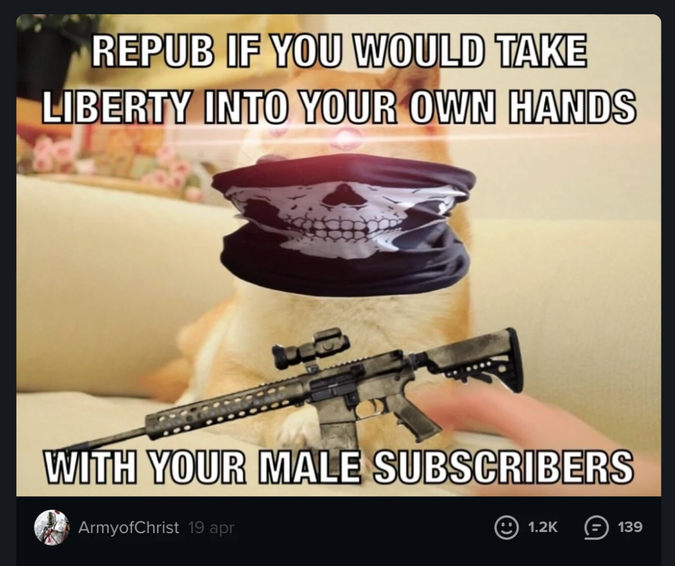 On the app iFunny, which is used to share memes, Olsen created many images threatening gun violence against groups such as Planned Parenthood.