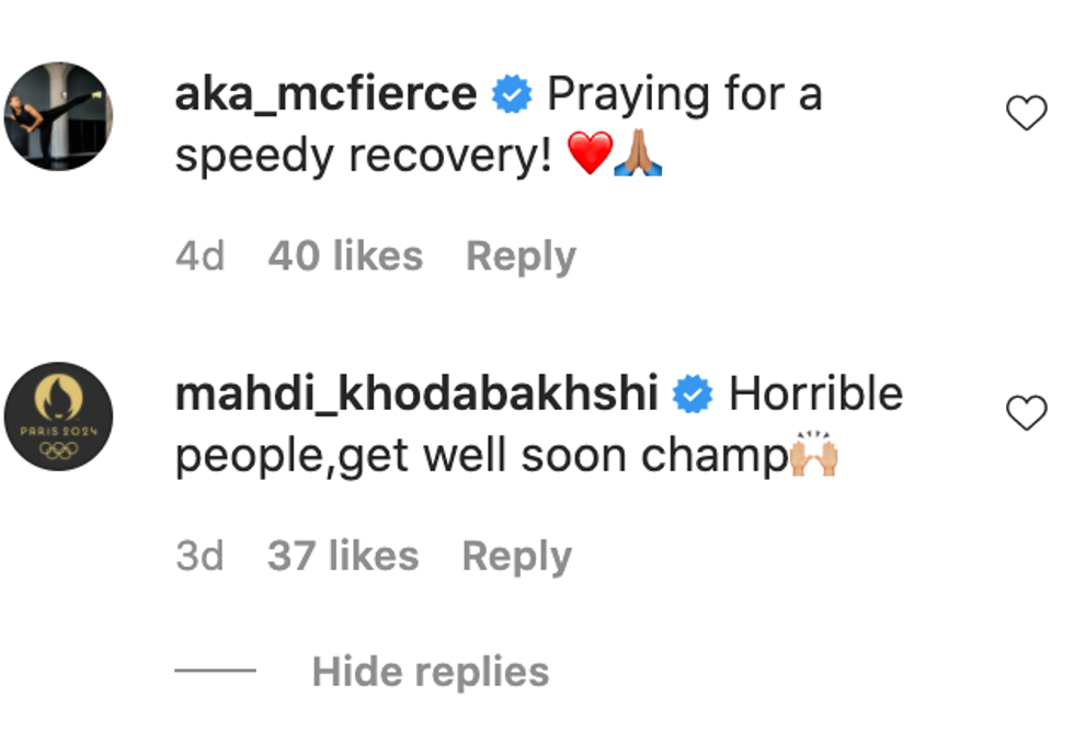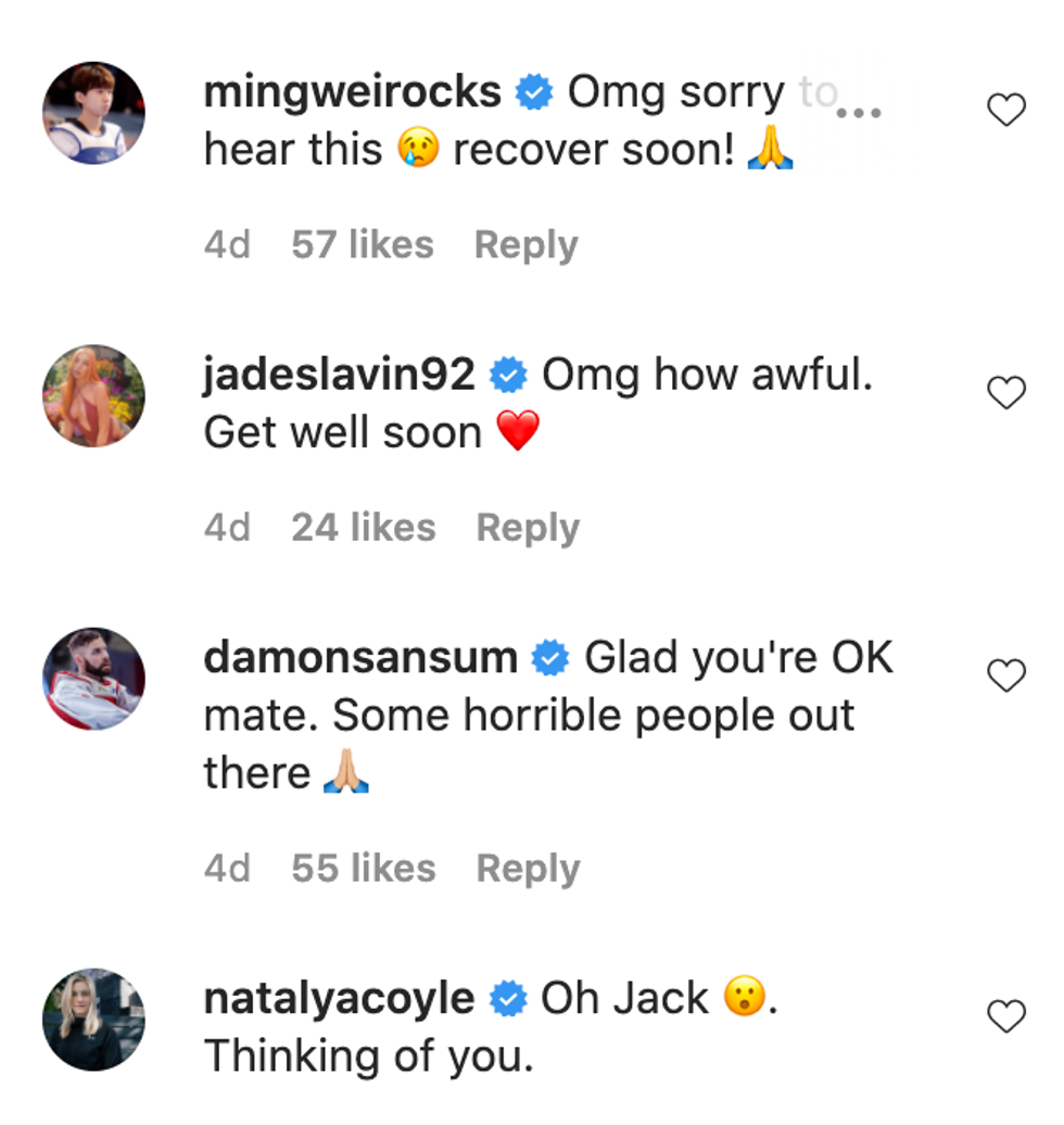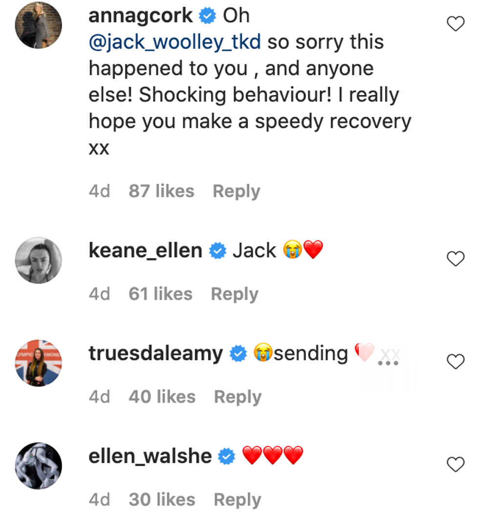 Woolley's fans were quick to fill both his personal and professional Instagram pages with love and support, while also wishing the Olympian a speedy recovery.