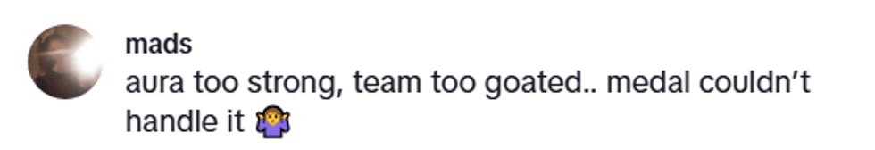 Alyssa Liu, who won gold for Team USA in independent figure skating, proudly shared her gold medal in a TikTok video. She looked proud and happy, but she showed the medal and the lanyard had already parted ways.