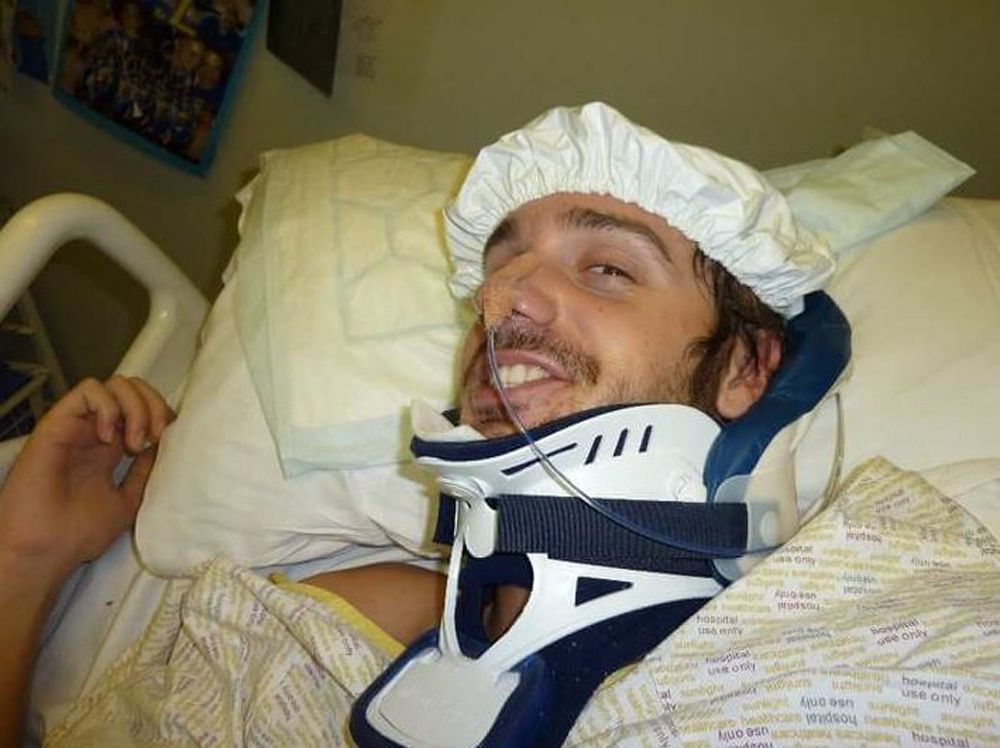 Flying back home 10 months later for his niece's christening, Ben made the disastrous decision to dive into the ocean—hitting the sea bed and breaking his neck in the process.