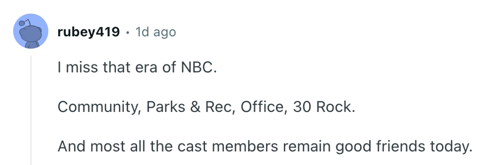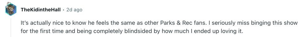 He told People magazine how much he misses his fellow castmates, including Rashida Jones, Nick Offerman, Aziz Ansari, Paul Schneider, Aubrey Plaza, and Chris Pratt, all of whom still remain in touch after the show wrapped ten years ago.