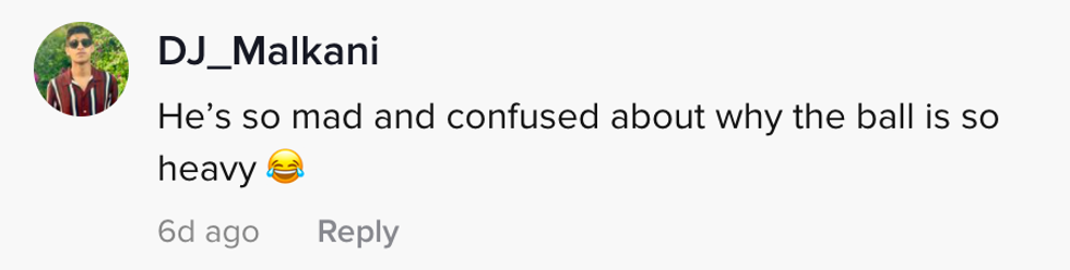 Another video later surfaced from the original poster of his son trying (and failing) to pick up the medicine ball and being very confused and angry about its weight.