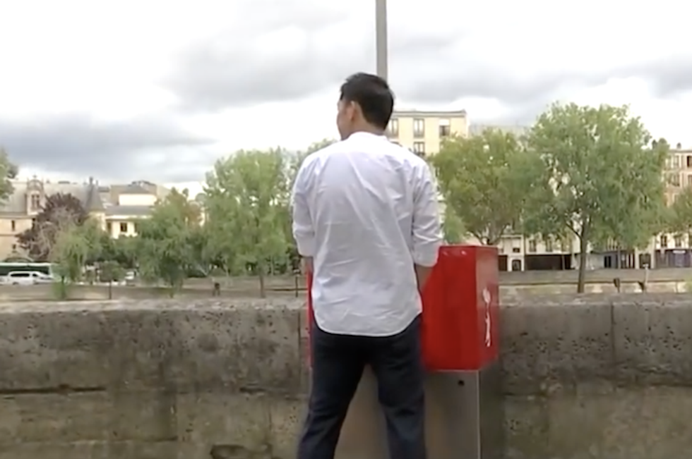 Faltazi erected one of their open-air urinals in Nantes, where the company is based. But it wasn't until the urinals made their appearance in a popular part of France, most notably, along the Seine's thoroughfare, Ile Saint-Louis, which is the neighboring island to Ile de la Cite on which stands the famed Notre Dame cathedral.
