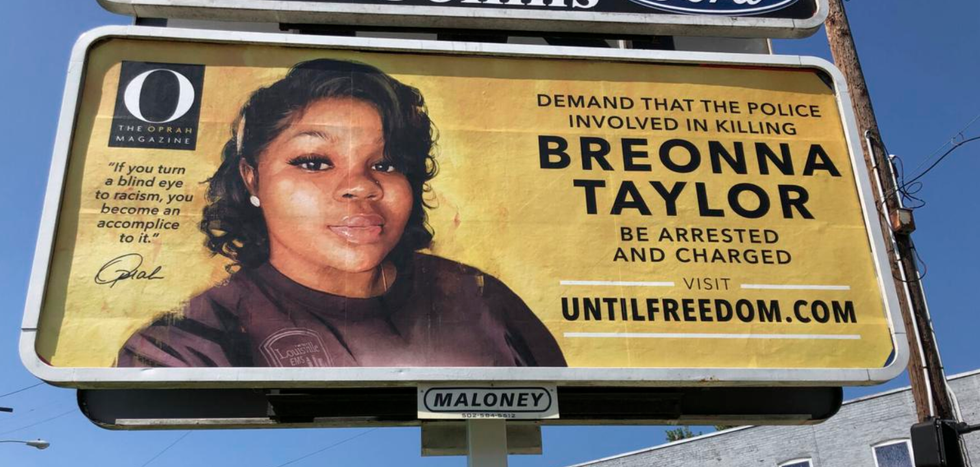 Winfrey purchased 26 billboards throughout Louisville, Kentucky—one for each year of Taylor's short life. All have messages calling for Mattingly, Hankison and Cosgrove's arrests.