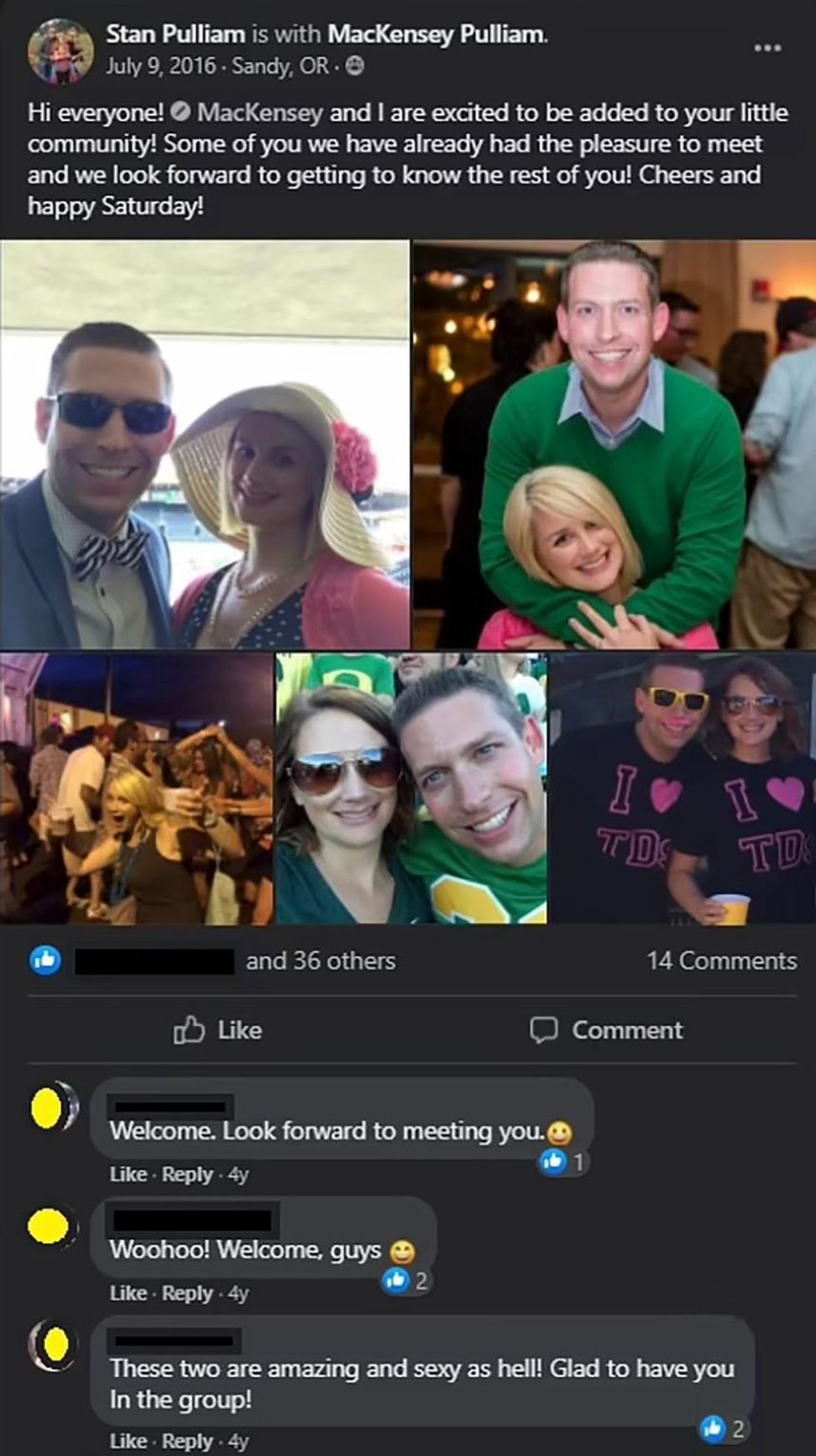 Pulliam and his wife were outed as swingers when a screenshot of his introduction post in the Facebook group resurfaced and was subsequently spread to the media.