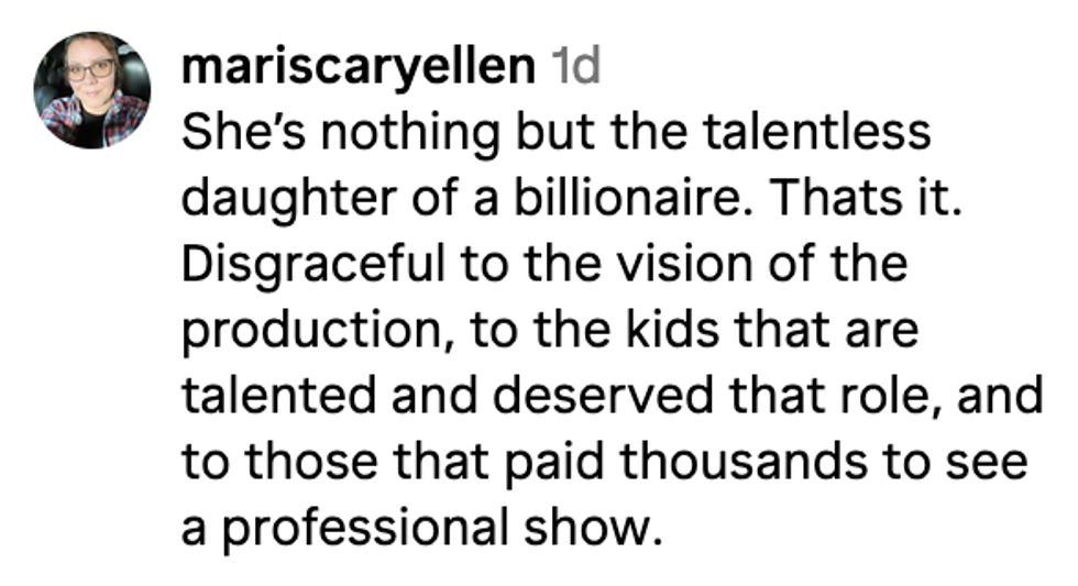 Clips of her performance went viral and prompted harsh criticism from those objecting to the casting decision, with many citing nepotism and her privileged upbringing.