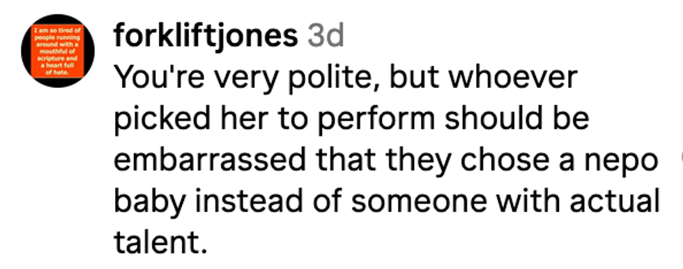 Users felt she didn't belong on the stage with the cast of seasoned talent.