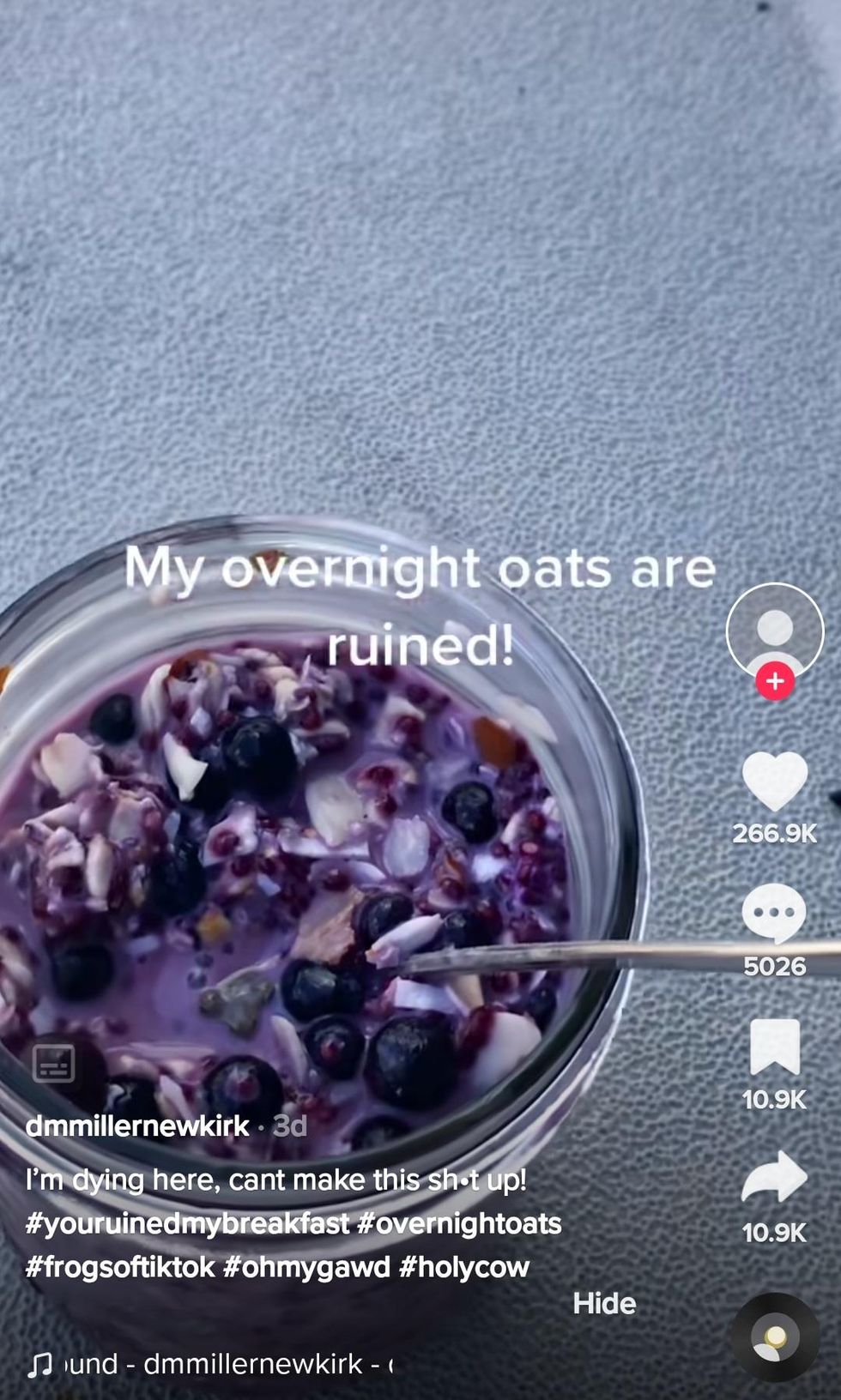 @dmmillernewkirk I’m dying here, cant make this sh•t up! #youruinedmybreakfast #overnightoats #frogsoftiktok #ohmygawd #holycow