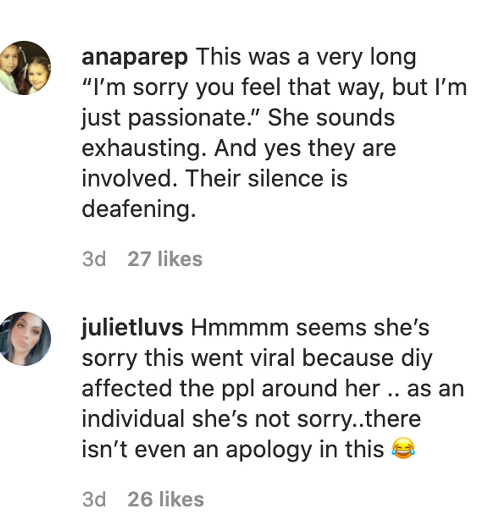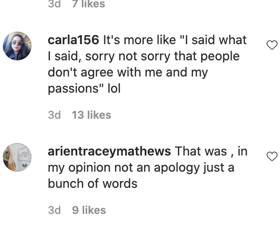 Spark's Instagram followers were equally confused as to whether or not Maiolo was sincere in her apology, or if there even was one.