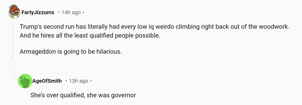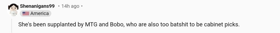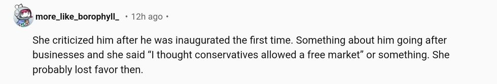 She also posted a series of screengrabs from a social media account run by "Mr. L" who asked why her name wasn't announced for a seat in Trump's cabinet.