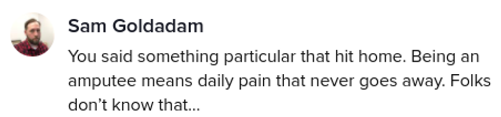 "And I get it. I'm young, I'm athletic. But I'm also missing legs. And I know I make it look easy, but it's still really hard. My legs are heavy, they hurt me, I'm in pain."