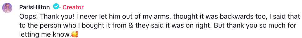Paris Hilton responded to worried followers on TikTok who noticed her son Phoenix was wearing his life jacket backwards in a recent video she posted on the platform.