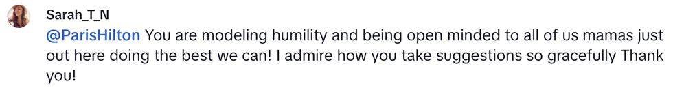 Fans commended Hilton for her gratitude and for accepting the advice of fellow moms.