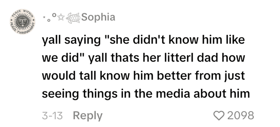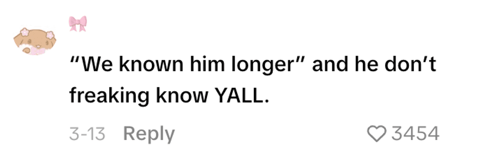“As much as I have respect for her. She don’t know him when we did. Love her But her insight is minimal.”