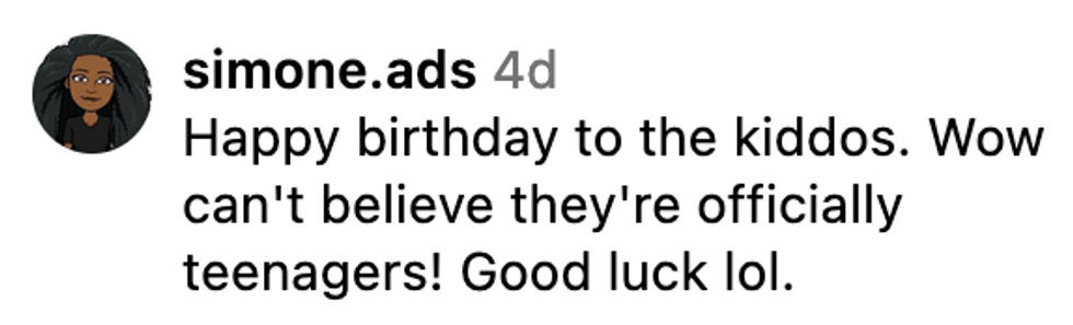 "And, just like that, they’re teenagers. Happy birthday, Harper and Gideon."