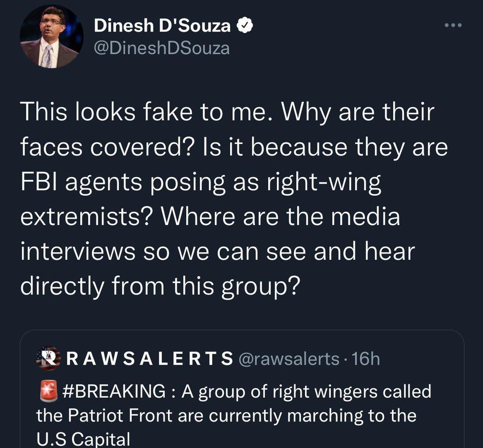 But it wasn't just their svelte physiques that had MAGA bots convinced Patriot Front is fake. Several far-right figures cited the group's ultra-coordinated appearance and the fact they claim to have never heard of Patriot Front as reasons they believe the recent march was an FBI ruse.
