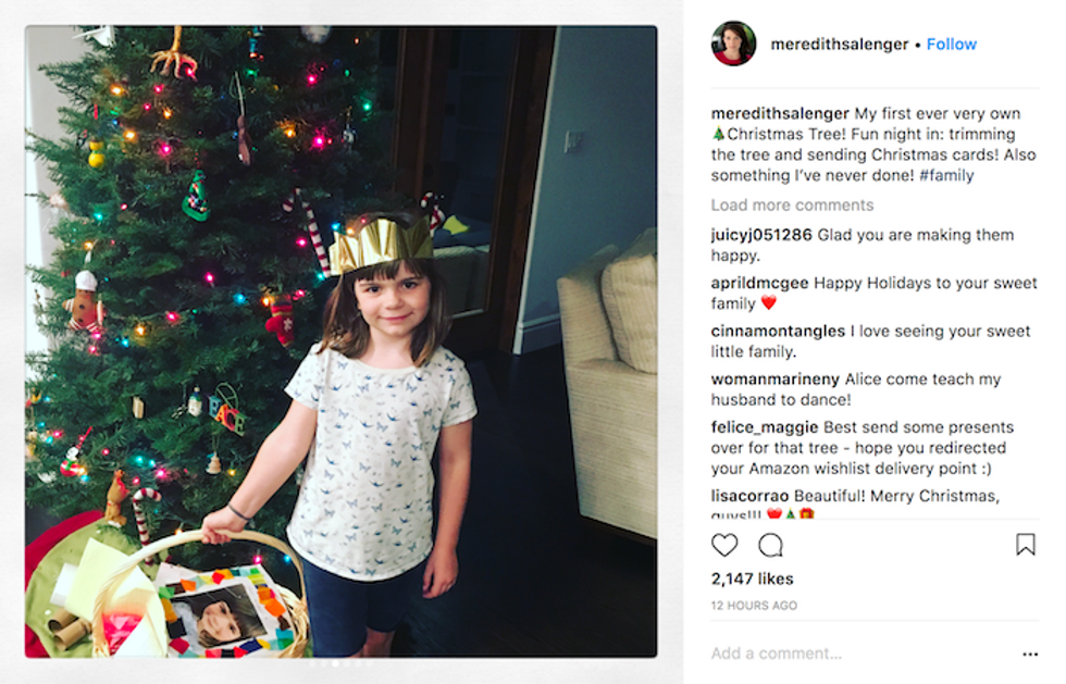 Salenger, who is of Russian Jewish and Austrian Jewish descent, embraced the annual Oswalt Christmas tree trimming tradition. "My first ever very own 🎄Christmas Tree! Fun night in: trimming the tree and sending Christmas cards! Also something I’ve never done! #family," she wrote on Instagram.